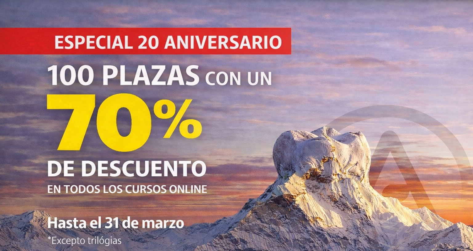 Especial 20 Aniversario: 70% de descuento en todos los cursos online, excepto Trilogías.